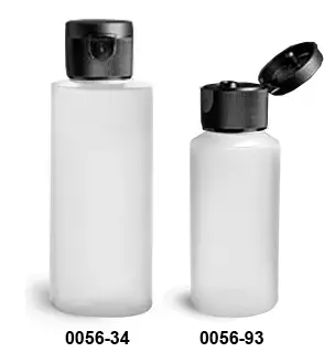 Plastic Bottles, Natural HDPE Cylinder Bottles With Black Ribbed Snap Caps