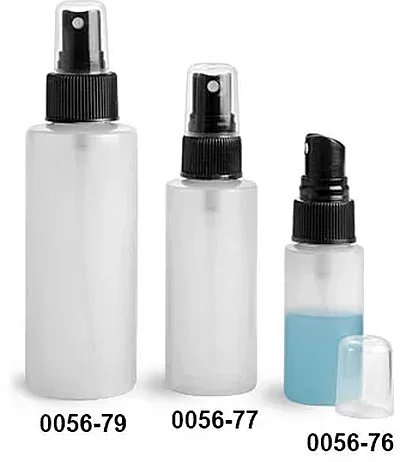 Plastic Bottles, Natural HDPE Cylinder Bottles w/ Black Fine Mist Sprayers