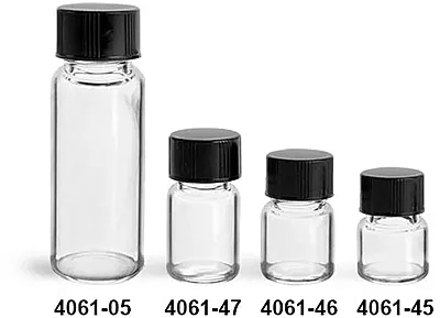 Glass Vials, Clear Glass Vials w/ Black Phenolic PV Lined Caps