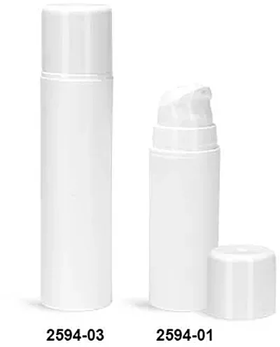 Plastic Bottles, White Polypropylene Airless Pump Bottles w/ White Pumps & White Overcaps