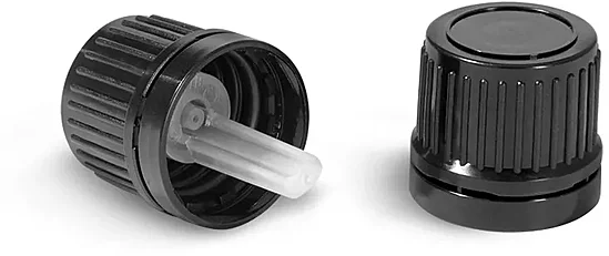 Dispensing Caps, Black Plastic Tamper Evident Caps and Orifice Reducers