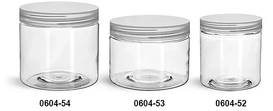 Plastic Jars, Clear PET Straight Sided Jars w/ Natural Smooth Unlined Caps