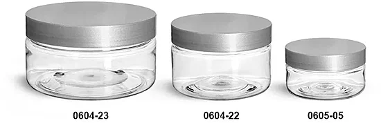 Plastic Jars, Clear PET Heavy Wall Jars w/ Silver Smooth Lined Caps