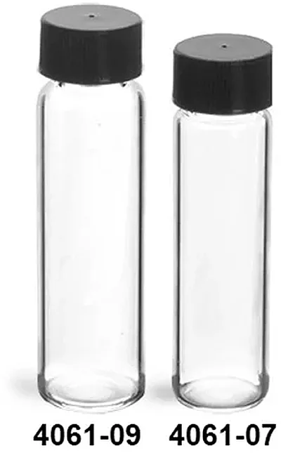 Glass Vials, Clear Glass Vials w/ Black Polypro Foil Lined Caps