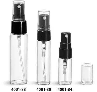Glass Vials, Clear Glass Vials w/ Black Smooth Sprayers & Overcaps