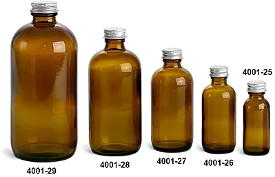 Glass Bottles, Amber Glass Boston Round Bottles w/ Lined Aluminum Caps