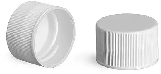 Plastic Caps, White Polypropylene Ribbed PE Lined Caps