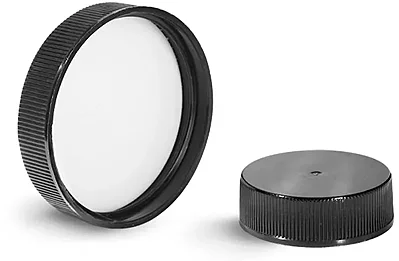 These black ribbed plastic caps feature a PE liner. This plastic cap features a smooth, shiny top, and is a good choice for acids, alkalis, solvents, alcohols, oils, household cosmetics, and aqueous products. The PE liner is a good general purpose liner material with a broad application base, and good chemical resistance so it can be safely paired with a variety of products.