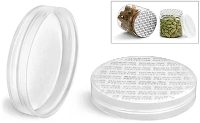 Plastic Caps, Natural Polypropylene Smooth Caps w/ Printed PS22 (pressure Sensitive) Liners
