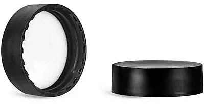 SKS offers smooth matte black polypropylene caps with PE-F217 liners, which provide excellent chemical resistance to acids, alkalies, solvents, alcohol, oils, household cosmetics, and aqueous products. These black matte plastic caps can offer a high-end look when paired with clear glass jars for packaging products that could include cosmetics, lip balms, and more.