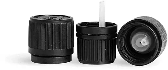 These black HDPE child resistant caps include many useful features to assist in packaging and dispensing. The child resistant caps include a universal picture on the top to assist with opening, and a tamper evident ring at the bottom that will detach after the first opening of the paired bottles. Within the black child resistant caps are LDPE dropper inserts with a 1 mm orifice that controls the liquids packaged within. Pair these black child resistant caps with euro dropper bottles for dispensing pharmaceuticals, essential oils, dyes, and more.