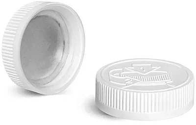 Child Resistant Caps, White Induction Lined Child Resistant Caps w/ Universal Picture