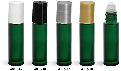 Glass Bottles, Green Frosted Glass Roll On Containers w/ PE Balls and Polypropylene Caps