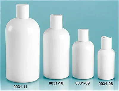 The white boston round bottles, ranging in size from 2 oz to 16 oz, include white disc top caps. These white plastic bottles could be ideal for packaging and dispensing a variety of bath and body products, such as lotions, hair care products and much more!