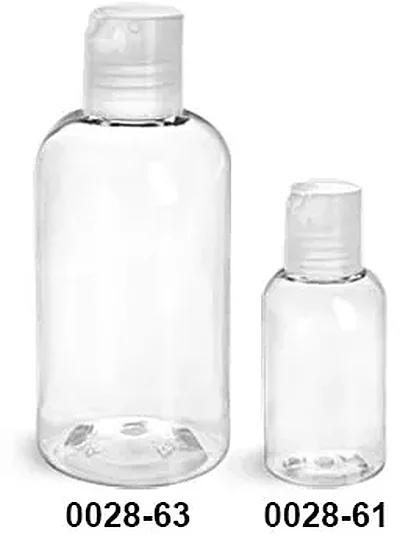The clear PET boston round bottles are available in five sizes and are accompanied by natural plastic disc top caps. These bottles could be an excellent choice for bath and body products.