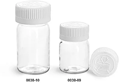 Plastic Bottles, Clear PET Wide Mouth Bottles w/ White Child Resistant Lined Caps