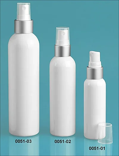 2579-05 24/410, 6 7/8" tube Sprayers, White Fine Mist Sprayers w/ Brushed Aluminum Collars