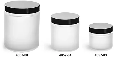 Frosted Glass Straight Sided Jars w/ Smooth Black Lined Caps