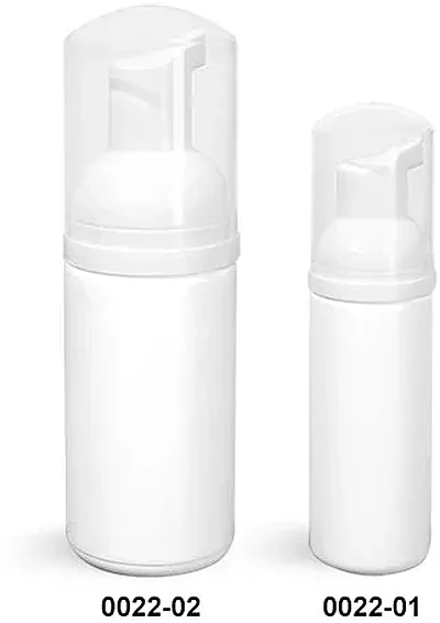 These white HDPE cylinder bottles come in two convenient sizes, 50 and 100 ml. Both come with white foamer pumps and clear overcaps. The white plastic foamer pumps create foam without the use of gas propellants, and allow for precise mixing of liquid and air, producing a dose of high quality foam with each stroke.