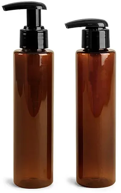 These 4 oz amber plastic cylinder bottles include black lotion pumps. Each stroke produces 2 cc of product through a metal-free fluid pathway. These plastic bottles could be ideal for packaging any number of high-viscosity products such as hand lotion, hair conditioner, liquid soap and more!