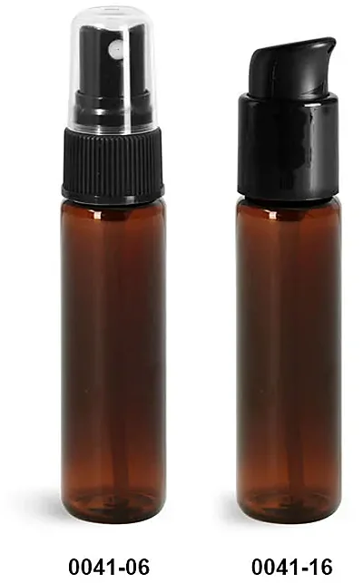 1 oz Amber PET Slim Line Cylinder Bottles w/ Sprayers or  Pumps