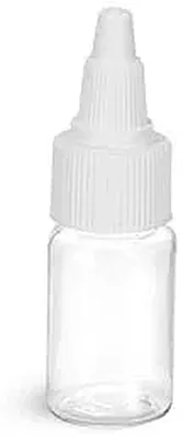These clear PET round bottles are available in 1/2 oz and 1 oz sizes with white polypropylene twist top closures. Twist top caps help to cleanly and evenly dispense product in small volumes. When not in use, simply twist the cap to seal the orifice and help prevent leakage. These small, clear plastic bottles could be used to package tattoo inks or other paints, dyes and more.