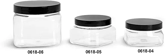 Purchase the 4 oz, 8 oz, or 16 oz clear PET square plastic jars wholesale (bulk) for the greatest savings. As always, be sure to test your products with these containers for proper compatibility.
