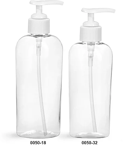 PET Plastic Bottles, Clear Cosmo Oval Bottles w/ White Pumps