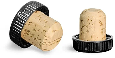 Cork Stoppers, Black Ribbed Bar Tops w/ Natural Corks