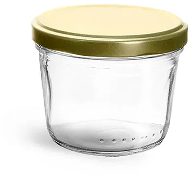 Clear Glass Jars, 230 ml Clear Glass Wide Mouth Tapered Jars w/ Gold Metal Lug Caps