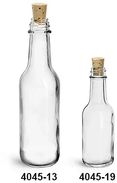 Glass Bottles, Clear Glass Woozy Bottles w/ Cork Stoppers