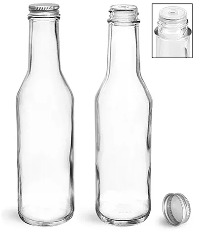 Glass Bottles, 8 oz Clear Glass Woozy Bottles w/ Lined Aluminum Caps & Orifice Reducers