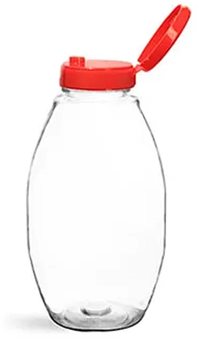 These clear inverted ovals come with red ribbed pressure sensitive lined snap top caps. The liner adheres to the opening of the container when the cap is first applied. Customers can then simply remove the cap and peel off the liner, upon first using to ensure product freshness and safety. Flip the snap top open and squeeze the bottle to dispense the product through the 0.25" orifice. These bottles, composed of PET plastic, feature a wide neck which allows for easy filling. The shape and material make this an easy to squeeze bottle, perfect for packaging products like honey, mustard, ketchup, salad dressing, and more.