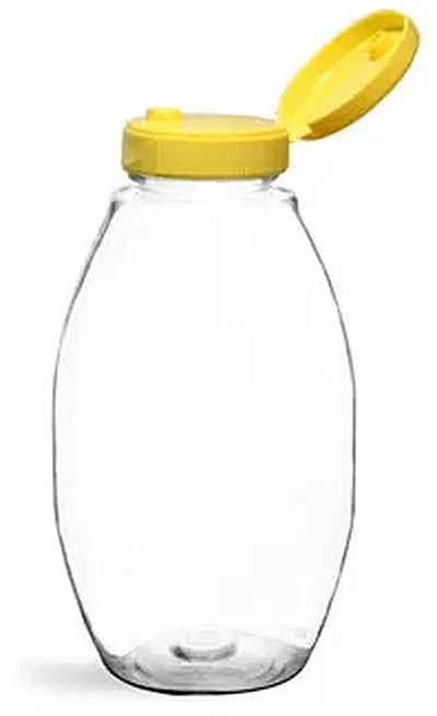 These clear PET inverted ovals come with yellow ribbed pressure sensitive lined snap top caps. The liner adheres to the opening of the bottle when the cap is first applied. Customers can simply remove the cap and peel off the liner, upon first using. Flip the snap top open and squeeze the bottle to dispense the product through the 0.25" orifice. The bottles feature a wide neck which allows for easy filling. The shape and material makes for an easy to squeeze bottle, perfect for packaging products like honey, mustard, ketchup, salad dressing, etc.