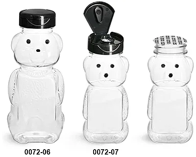 Plastic Bottles, Clear PET Honey Bear w/ Black Polypro Induction Lined Snap Top Cap