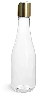 Plastic Bottles, Clear PET Woozy Bottles w/ Gold Smooth Disc Top Caps