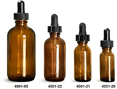 2610-04 20/400 (7 mm x 89 mm) Glass Droppers, Black Bulb Glass Droppers