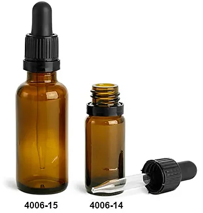 Glass Bottles, Amber Glass Euro Dropper Bottles w/ Black Tamper Evident Glass Droppers