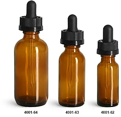 Amber Glass Bottles, Boston Round Bottles w/ Child Resistant Glass Droppers