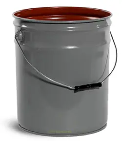 5 Gallon Metal Pails, Gray Open Head Pails w/ Red Phenolic Liners, UN Rated