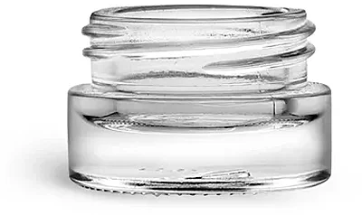 Clear glass cosmetic jars offer a stylish choice for packaging products like eyeshadow, lip stain, eye cream, and more. These glass jars feature high clarity, thick walls, and a durable base. The thick wall cosmetic jars have a specialized neck finish that is only compatible with matte white plastic caps (stock# 2250-155 and 2250-155B).