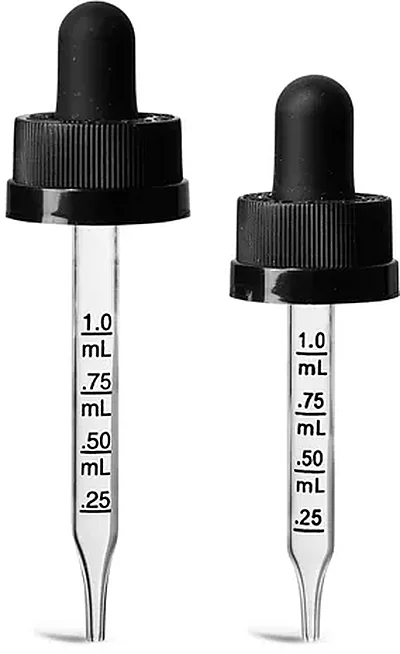 Child Resistant Caps, Black Child Resistant Graduated Droppers w/ Glass Pipettes