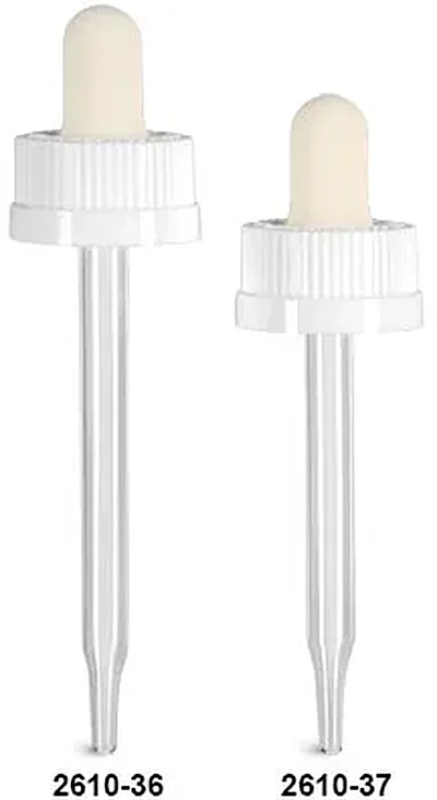Child Resistant Caps, White Child Resistant Droppers w/ Glass Pipettes