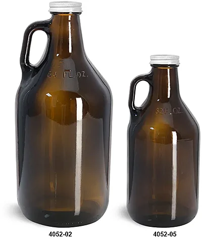 Amber glass handle jugs paired with white metal plastisol lined caps create an old fashion style with high durability and versatility. These amber glass bottles offer UV protection for light sensitive products, sturdy molded handles for comfortable transporting, and narrow necks for controlled pouring. When properly activated, the plastisol liners will create a tamper evident hermetic seal with these amber glass bottles for long term storage. Test these amber glass handle jugs when browsing packaging for products that could include craft beers, syrups, ciders, and more.