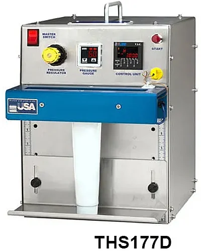 The THS177D self-contained tube sealing device is ideal for laboratory, production line, research and development use, and more. This digital tube sealer is economical, safe to operate and easy to use, and could also be used to seal small bags and pouches for smaller production runs, in addition to tubes. This tube sealer can be used on all LDPE, MDPE or HDPE tubes within a 7" maximum seal length. A wide variety of additional parts are also available below, including a 220V upgrade, dual element, and digital water chiller.