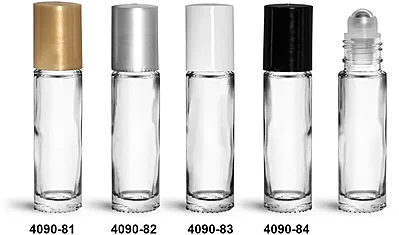 Clear glass roll on containers are available with the option of gold, silver, white, and black plastic caps to package a line of fragrances, cosmetics, gift sets, and more. The clear glass roll on containers feature high clarity and are impermeable, preventing interaction between the container and product. Paired with each clear glass roll on bottle is a polyethylene plastic housing, stainless steel roller ball, and polypropylene plastic cap.