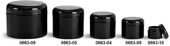 Plastic Jars, Black Polypropylene Double Wall Straight Sided Jars w/ Lined Black Dome Caps