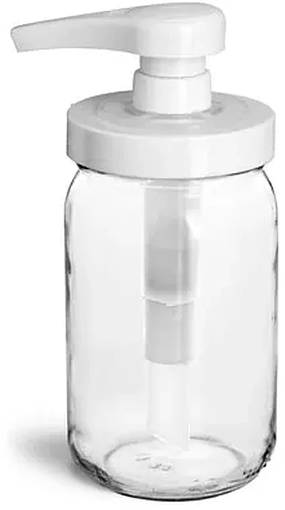 Clear Glass Jars, Clear Glass Mayo/Economy Jars w/ White Polypropylene Pumps