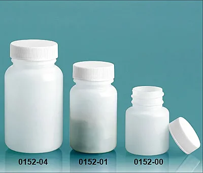 Plastic Bottles, Natural HDPE Wide Mouth Pharmaceutical Round Bottles w/ White Lined Screw Caps