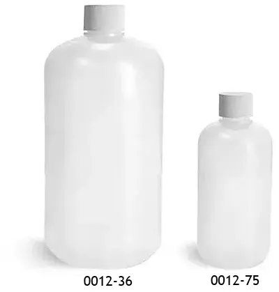 Plastic Bottles, Natural HDPE Boston Round Bottles w/ White Lined Screw Caps